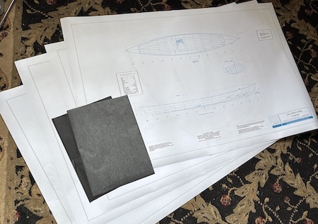 The plans consist of 4 sheets – a page featuring scaled views of the canoe, a page with full-sized plans for the 11 station molds and a separate page for each of the full-sized fore and aft stem mold plans. Also included are 2 sheets of carbon paper.