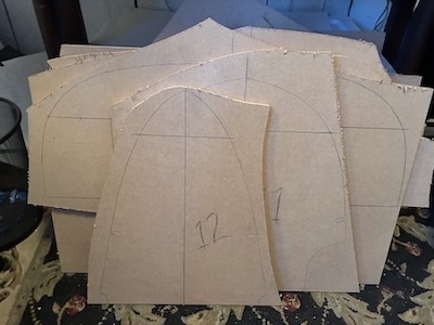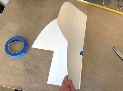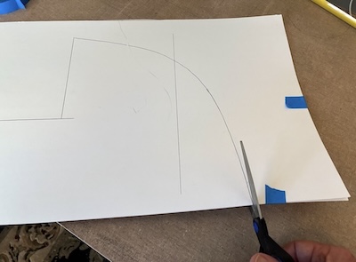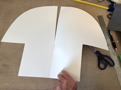 Aligning and taping a second sheet of poster board under the first, then cutting out the pattern through both, gave me two identical half patterns.