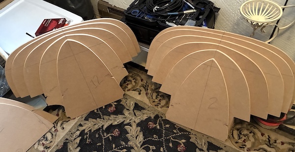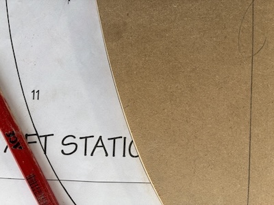 An easy trace around the perimeter of each poster board transferred the pattern line. I also included the centerline and water line on each mold for reference. My current jigsaw blade made quick work of cutting the MDF but notice the rough edges it left.