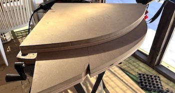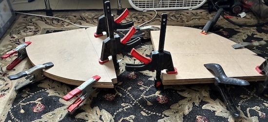 To do so, the stem molds at each end need to be double the width of the other forms. Unfortunately I've used up all my MDF but fortunately, I located enough leftover 1/2-inch plywood from a previous project to glue and screw a second layer to both stem molds.