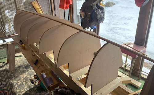 The strongback is the underlying structure that supports the station molds and raises the project up to a convenient working height. It has to be strong enough to hold everything solid and level throughout construction process.