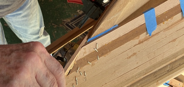 After making sure the strip is aligned and tight against the previous strip, I staple it to the edge of the center form.