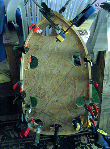 Every clamp I could round up is used to secure the first layer of the lip for glueing.