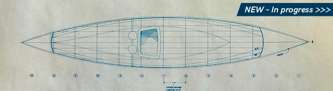 Built using the non-traditional method of full-length stringers supported by plywood cross sections covered with polyester – a light, tough, easy-to-build kayak.