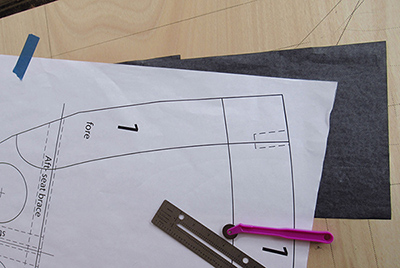 Lines from my full-sized patterns were transferred to the plywood using a serrated tracing wheel and graphite carbon paper purchased from a fabric shop.