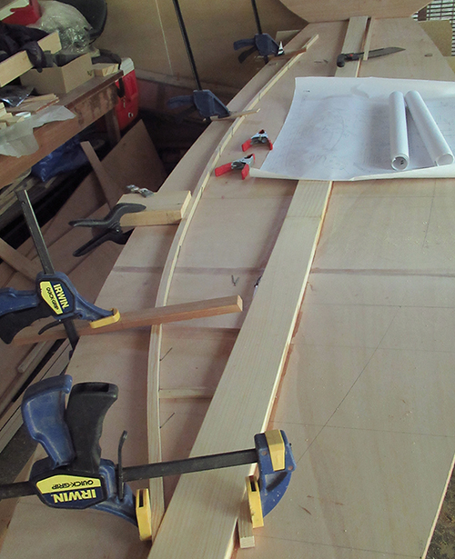 Here are some of the stations with the trim clamped in place awaiting a batch of epoxy to be mixed.
