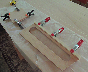 Clamped while the epoxy cures. I had to do one side at a time because of my current limited supply of clamps