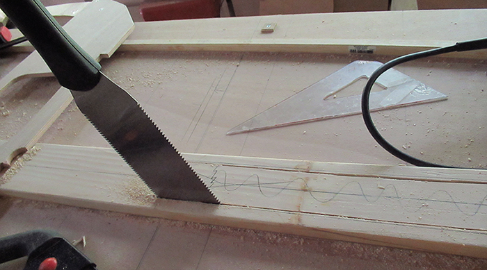 Gotta do it at some point – cutting the centerboard slot. I used a drill to get the jigsaw started, then switched to this hand saw to cut through a riser located under the bottom panel.