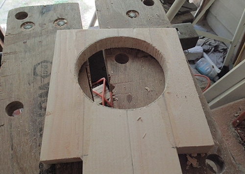 The front of the packers is angled to clear the bottom side plank and a bit will be planed off of the mast step too. I added a layer of 9mm plywood under the block to get it's thickness to the required 2 inches.