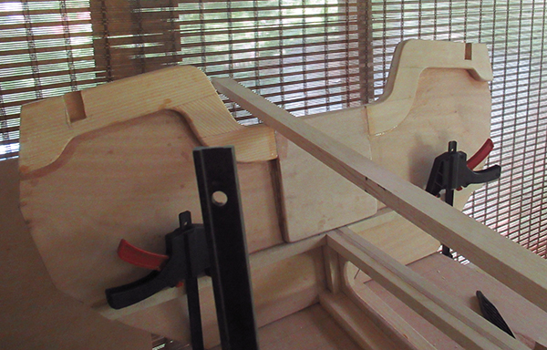 As a fix, I've added an extra piece on each side to widen the footing. With the addition of another plywood trim strip along the bottom of the centerboard trunk, it all works out and hopefully just makes the case more solid.