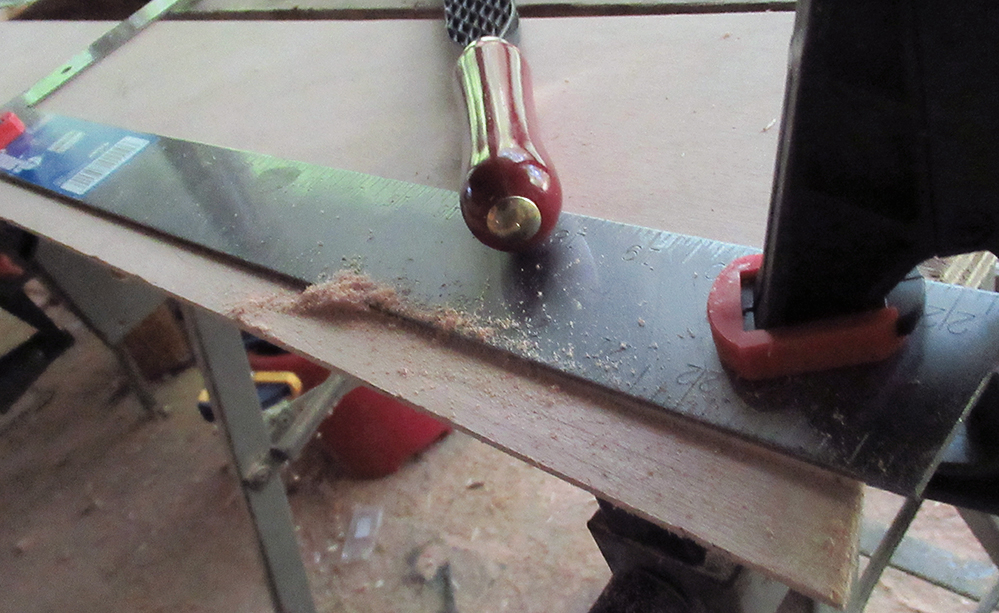Cutting Gains - Take 2: It's much easier when the plank is not on the frame. This went so quickly and easily using just a heavy straight edge and the Shinto rasp, although I once again started with a razor cut just to get a clean edge.