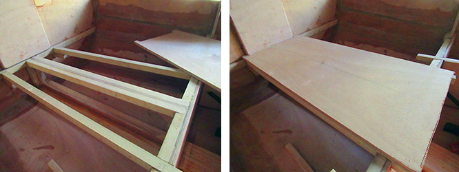 Measuring directly from the boat, I cut a piece of plywood large enough for the final seat shape, then positioned it as close to its final location as possible.