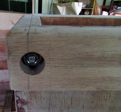 Before starting on the seats, I finally picked up some stainless steel bolts and installed them at the top of the daggerboard as specified in the plans.