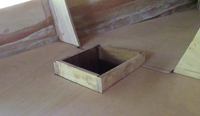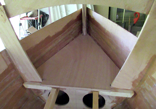Moving up to the front... remember the box that surrounds the mast? It has to pass up through the front seat. Here it is sitting on top so I can trace the contour.