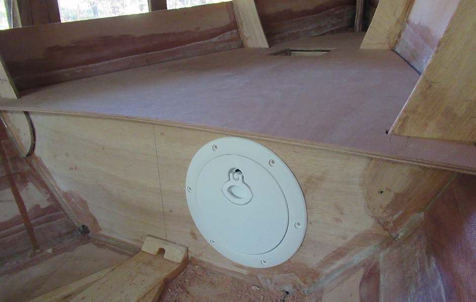 You may notice an inspection port resting in the back corner. I purchased two this week, one for up front and one for the rear. I'll probably install the aft one near where it is positioned in this photo. It will make a handy dry storage area as well as provide access to the rear floatation chamber.