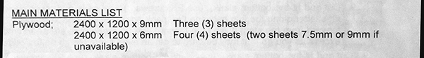 It was the two sheets listed in parenthesis. Now I realize they must be for the seats and 7.5mm is the recommended size – perfect!. I assume the parenthesis indicate these 2 sheets are optional, since one could choose to use other lumber for the seat tops.