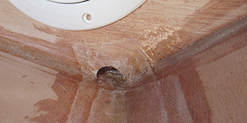 Since I have an inspection port installed to allow air flow when needed, I've plugged the holes with a plywood patch which will be filleted over.
