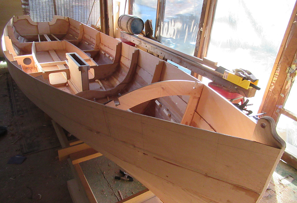 Production will be slowing down as Winter arrives. I've read that gluing and filleting can still be done in cooler temperatures so I will continue as long as I can. Also, still needing construction are the rudder, tiller and daggerboard which I may be able to do indoors during the Winter months — still hoping to launch next Summer!