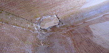 Here is the rough epoxy fill over the limber hole patch of last week.