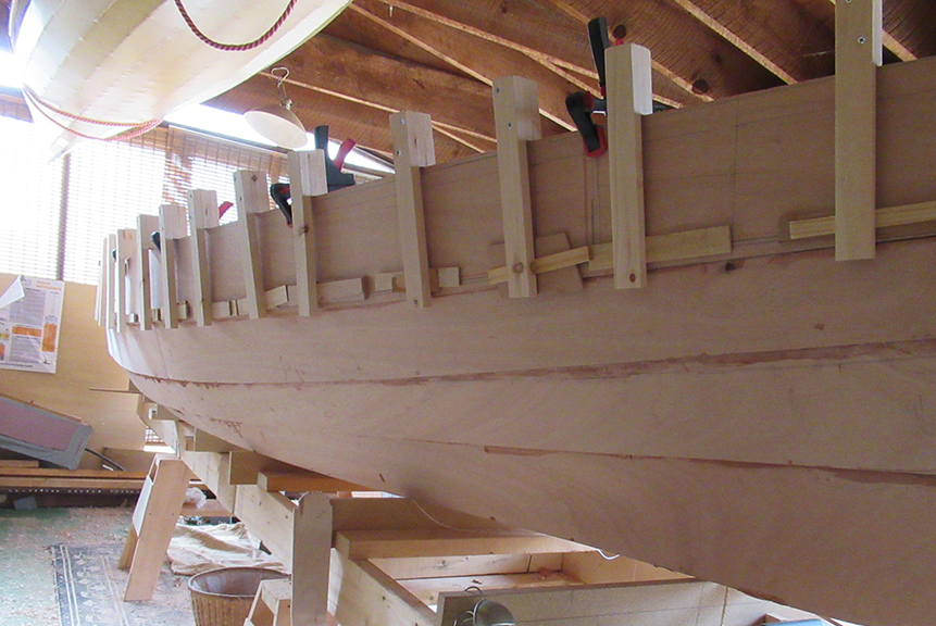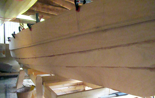 The inwale is clamped in place.