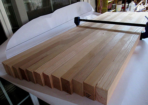 Here is the complete board glued up, clamped and all the squeeze out cleaned up.
