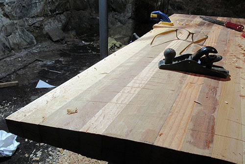 After several sessions with the plane it's getting closer to final shape. Of course this is just one side of the board and it took several evenings and most a Saturday to get this far. With mini sessions throughout the week, I hope to be close to finishing by next weekend.