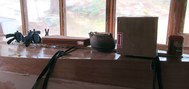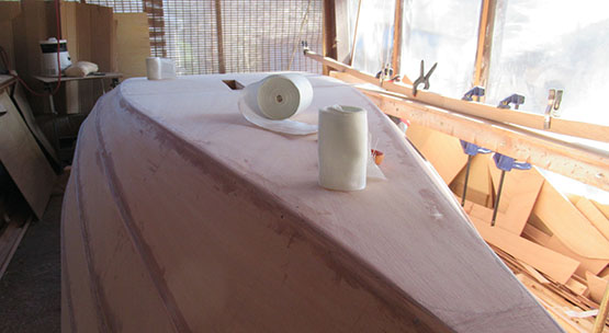 The next day it was followed by a second, smoothing coat to the fillet. Then a strip of fiberglass tape to add some strength to the keel and joint.