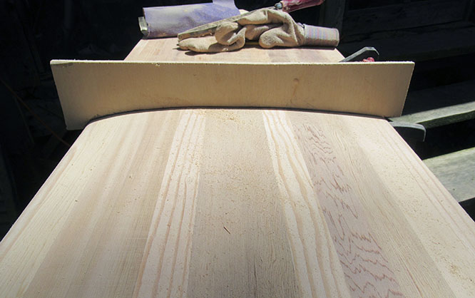 Smoothing continued down the bow.