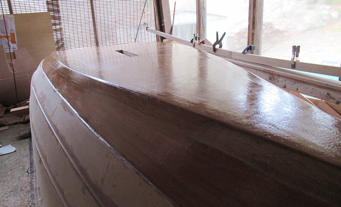 And finally on the third day, I did a fill coat over the entire fiberglassed part of the hull.