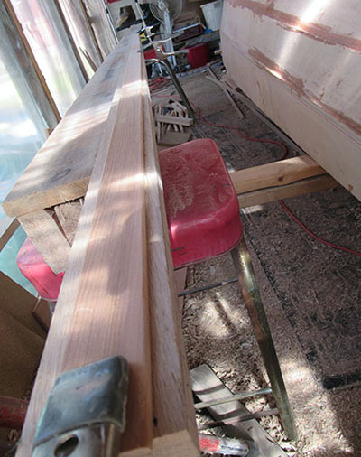 My strongback from a previous project makes a solid, flat work space to do the planing.