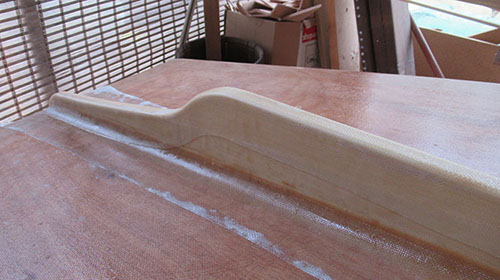 Here I'm fitting the piece that slips in the slot at the top of the board. It will get trimmed then screwed and glued to the underside of the capping board, followed by the whole assembly being inserted and glued to the top of the daggerboard.