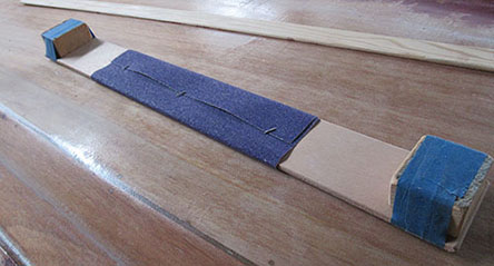At the bow, each side tape extended across the centerline by several inches and I ran two overlapping strips down along the length of the bow.