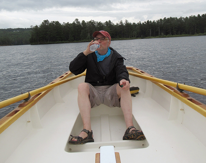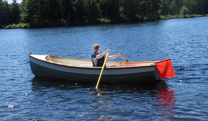 Rowing is enjoyable and this boat moves right along when balanced properly. I still need to install the second pair of oarlocks in the front rowing position to provide better load balance with two people aboard.