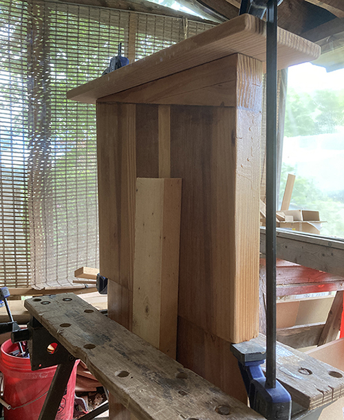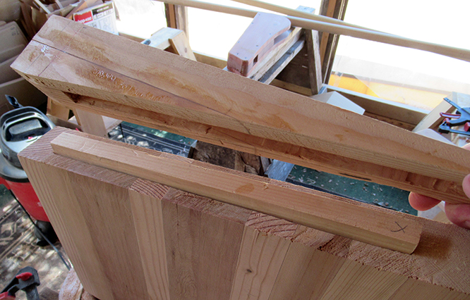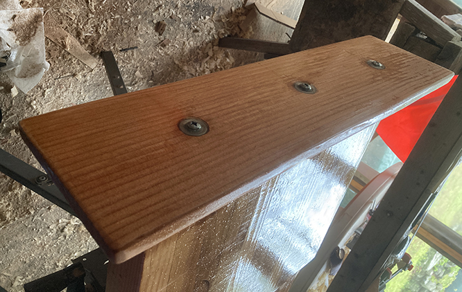 I had to laminate 2 boards to make the lower spacer – getting epoxied here before final shaping.