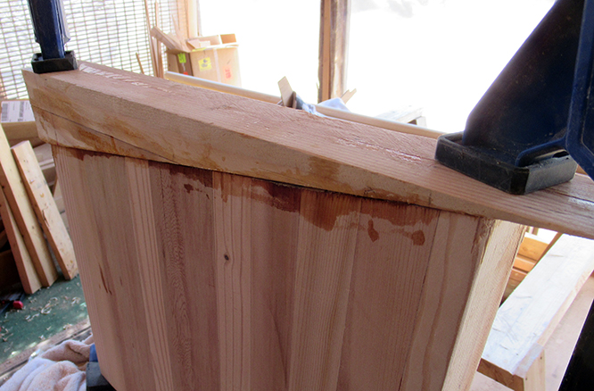 When in place, the cap creates the proper angle for the top edge. It's currently slightly oversized but will be cut and sanded to fit once epoxied in place.