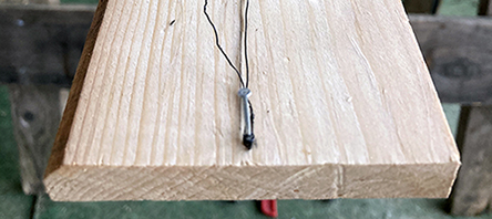 Now, back to the dagger board. I had seen photos of another Rogue board with four large holes drilled through the top section. I never knew why but now, after handling this heavy and cumbersome board, I can see some benefits — reduce the weight, provide a few additional carrying and lifting options and maybe even provide stops for adjusting the height of the board when its in the trunk. Seems like a good idea so I started by drilling a pilot hole through the board at each location. Then with the large drill bit, drilled as deep as I could from each side.