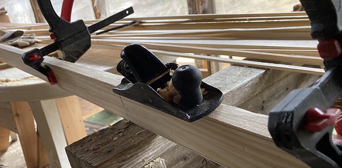 A block plane, the Shinto Rasp, sandpaper and a straightedge were used to achieve the specified gradual taper out to the tips.