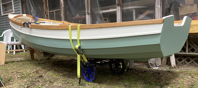 It is finally in its new resting place where I can fit and install the mast, rudder, centerboard and tiller. Also, there will be some cleanup, possible painting and the rigging setup.