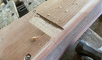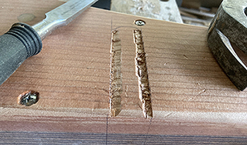 If I had purchased a router, I would use it right now. But without one, I started in with a hammer and chisel.
