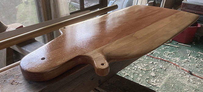 And then to wrap up the weekend, a final coat of varnish on all the components. Daggerboard completed.