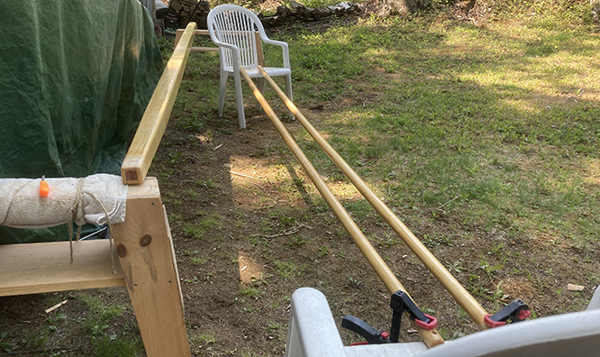 While that job was curing, the spars got another coat of varnish. The ends will be done separately because I need an unvarnished area to support varnished part while drying.