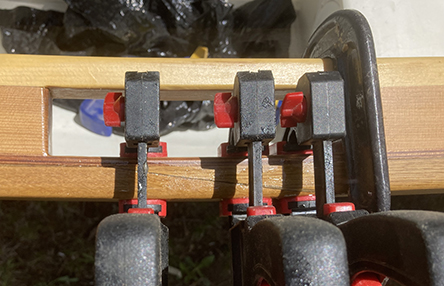 And then I noticed this scarf joint is giving out. I clamped it up to prevent further damage and hopefully I can seal it right up with some thickened epoxy.