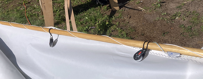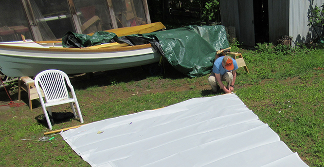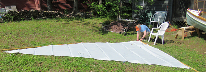 Then on to attaching the sail to the spars...