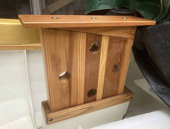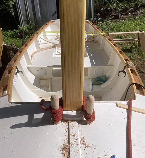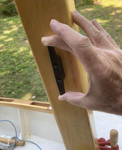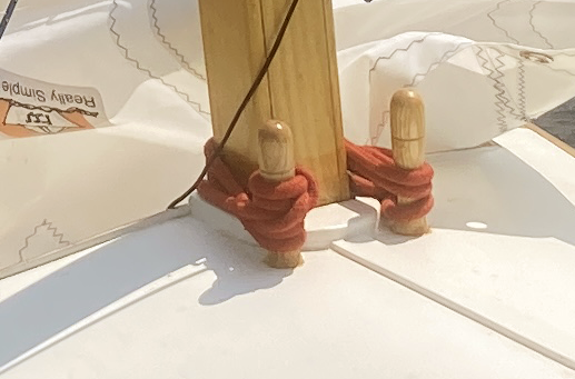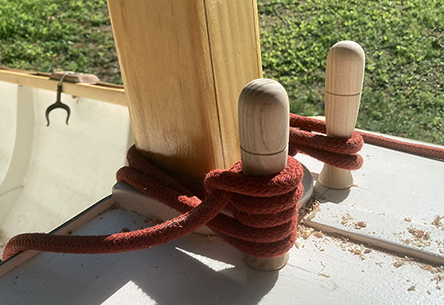 So, I guess it's back to the drawing board. At this point I'm thinking of re-gluing the broken pin and in the future, using the pins for their intended purpose — holding coiled lines. To support the mast, I'll probably devise some kind of mast gate.