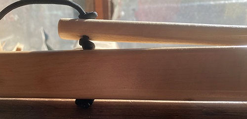 Here'she tiller resting in place on the bar.