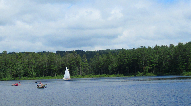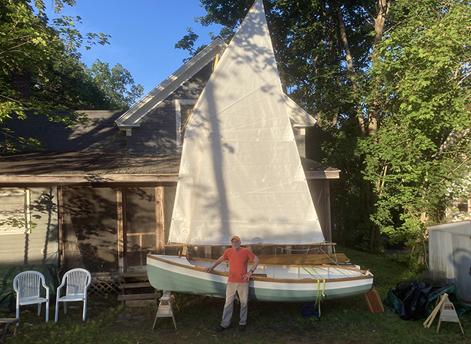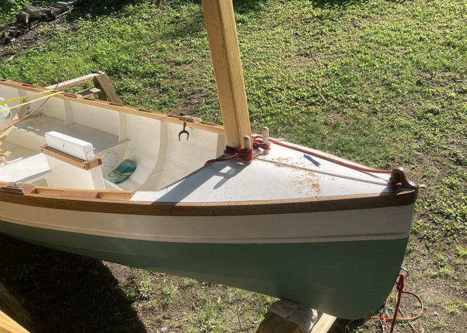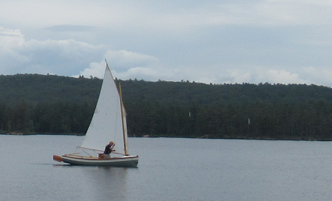 A nice look at how the Goat Island Skiff sail sits on the Rogue.