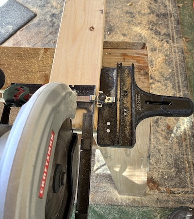 To make the "steps" of the ladder which will serve as the station mounts, I first ripped an 8-foot, 2x4 down the center with a skill saw (using a rip fence attachment), then cut the 2 resulting pieces into 12" segments.