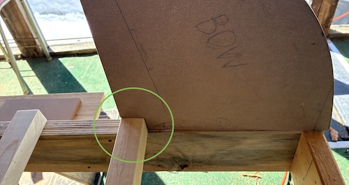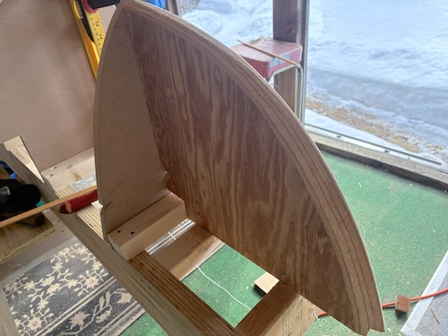Then the stem form at each end was squared up and attached with screws through the adjacent station form and angled into the strongback.