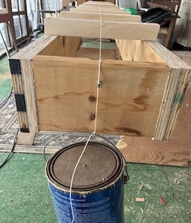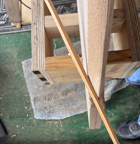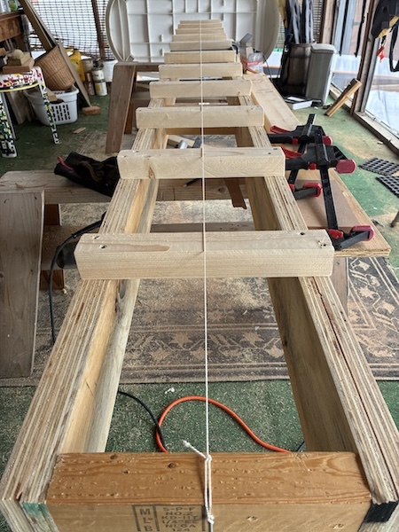 A tightened string was used to mark a center line on the cross pieces.