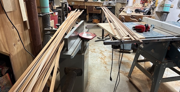 Three passes through a planer got the tapered shingles down to 1/4" for most of the width.